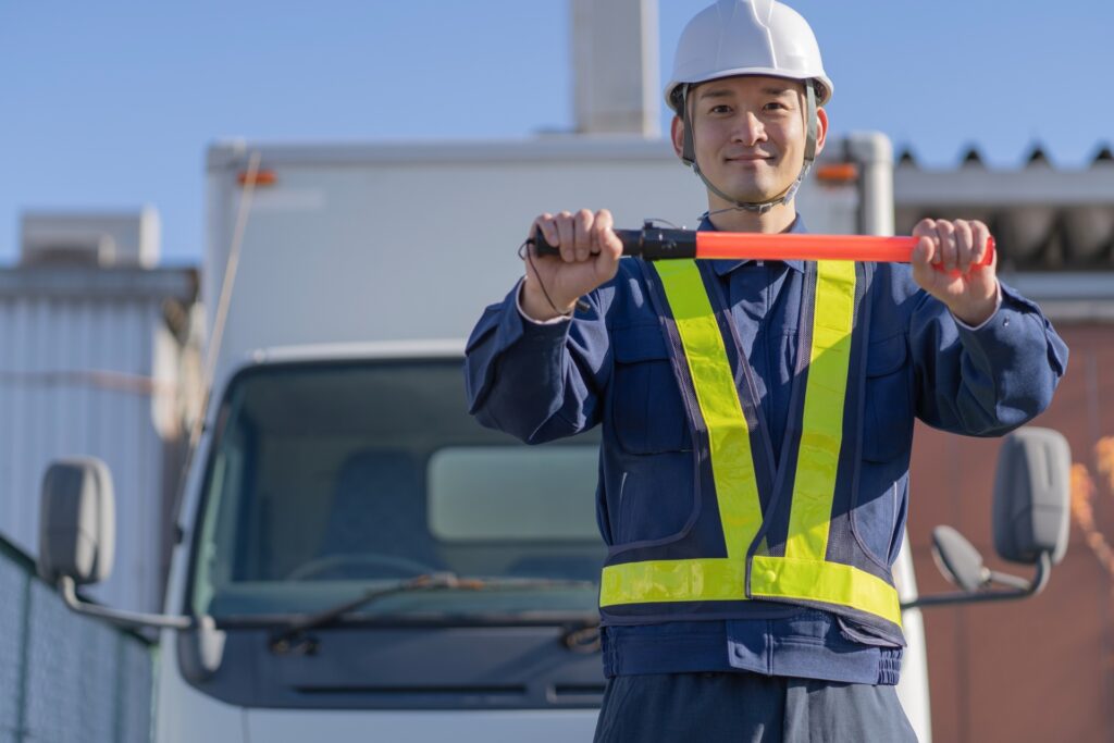 土木作業をされている現場の方や、通りかかる一般の方の安全距離を確保し、作業者の目となり双方の安全を確保します。交通誘導警備では安全面を担うためとても重要な役割となります。
